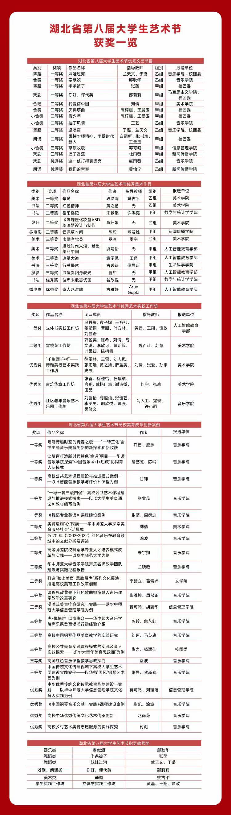近年来,永利官网始终坚持以习近平新时代中国特色社会主义思想为指导,全面落实立德树人根本任务,坚持面向全体学生组织开展内涵丰富、形式多样、具有时代特征和校园特色的艺术活动,坚持培育展现华师良好风貌的优秀美育作品。